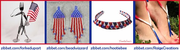 This seemed like a good time for Cheryl to stop whining long enough to be grateful for her life. So I compiled a few creations from fellow artists on http://www.zibbet.com/ & on http://www.etsy.com/, who obviously thought about July 4th long before I did! Hope you enjoy my selections. I'm feeling better now, ready to go to bed fret-free:)